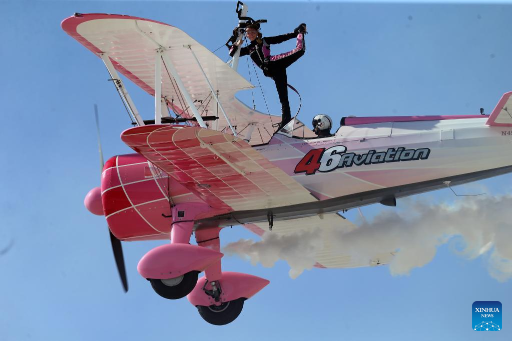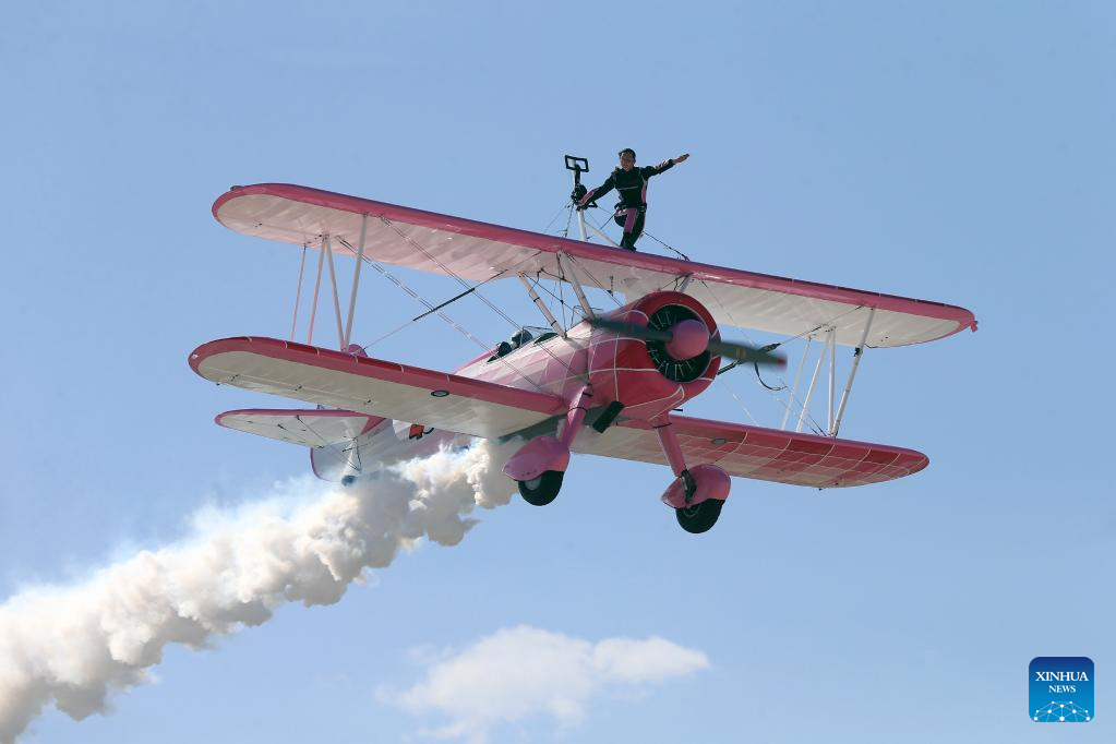 A wingwalker performs during the Sivrihisar Airshow 2022 in Sivrihisar district of Eskisehir in Trkiye, Sept. 17, 2022.