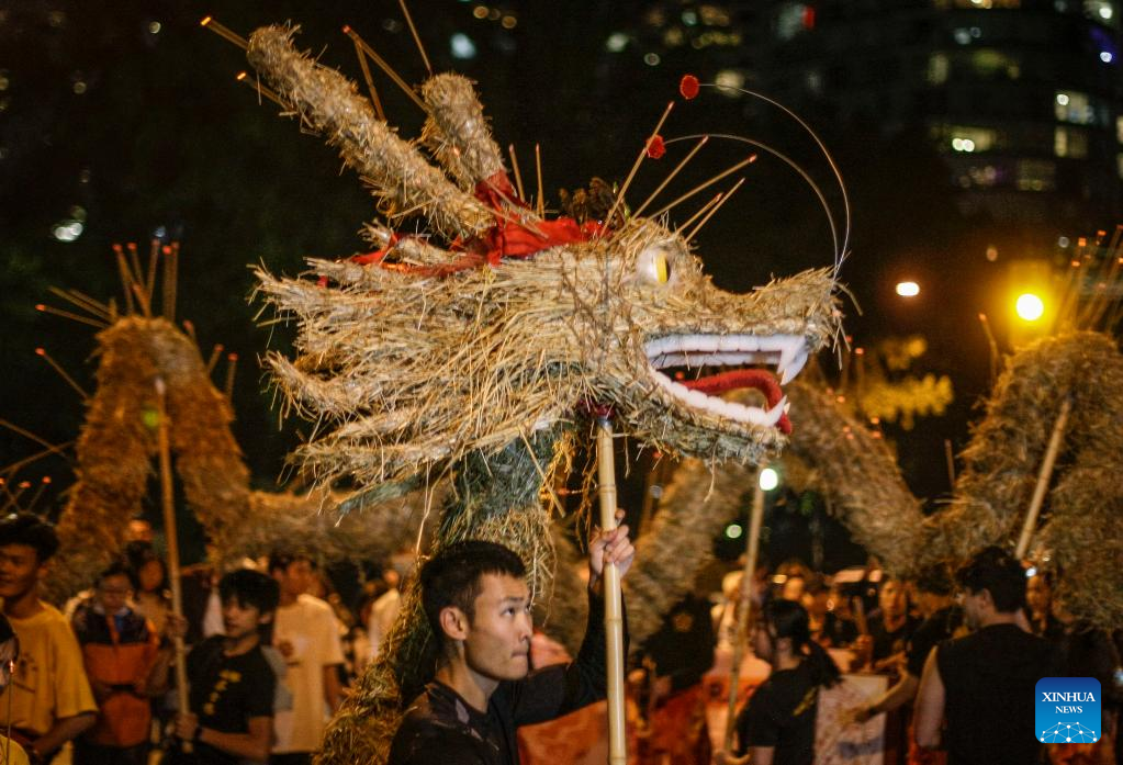 Dragon dancers perform during the Fire Dragon Festival at Chinatown in Vancouver, Canada, Sept. 17, 2022. (Photo by Liang Sen/Xinhua)