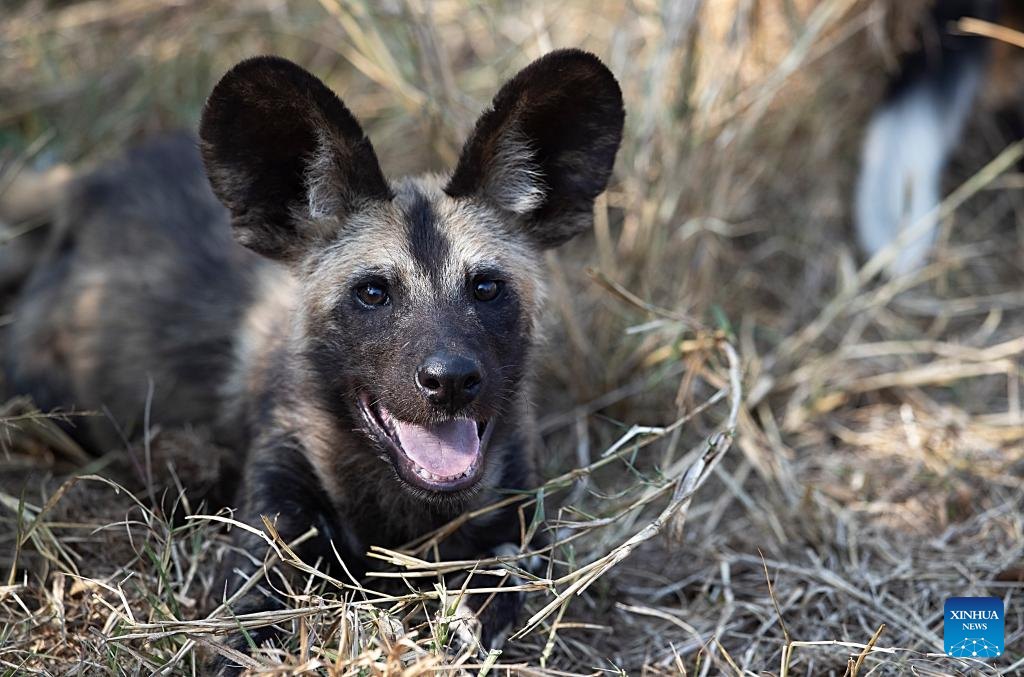 Photo taken on Sept. 17, 2022 shows an African wild dog at the Kruger National Park, Mpumalanga, South Africa. Kruger National Park is one of the largest game reserves in Africa. Covering an area of 19,485 square kilometers in northeastern South Africa, the park is a home to an impressive number of species. (Xinhua/Zhang Yudong)