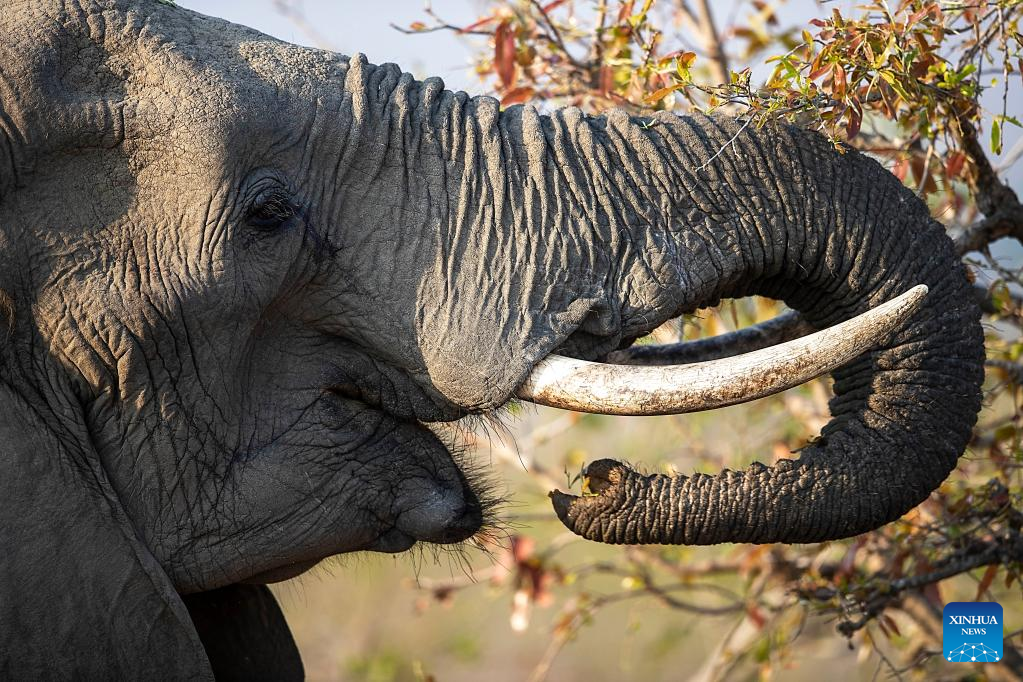 Photo taken on Sept. 17, 2022 shows an elephant at the Kruger National Park, Mpumalanga, South Africa. Kruger National Park is one of the largest game reserves in Africa. Covering an area of 19,485 square kilometers in northeastern South Africa, the park is a home to an impressive number of species. (Xinhua/Zhang Yudong)