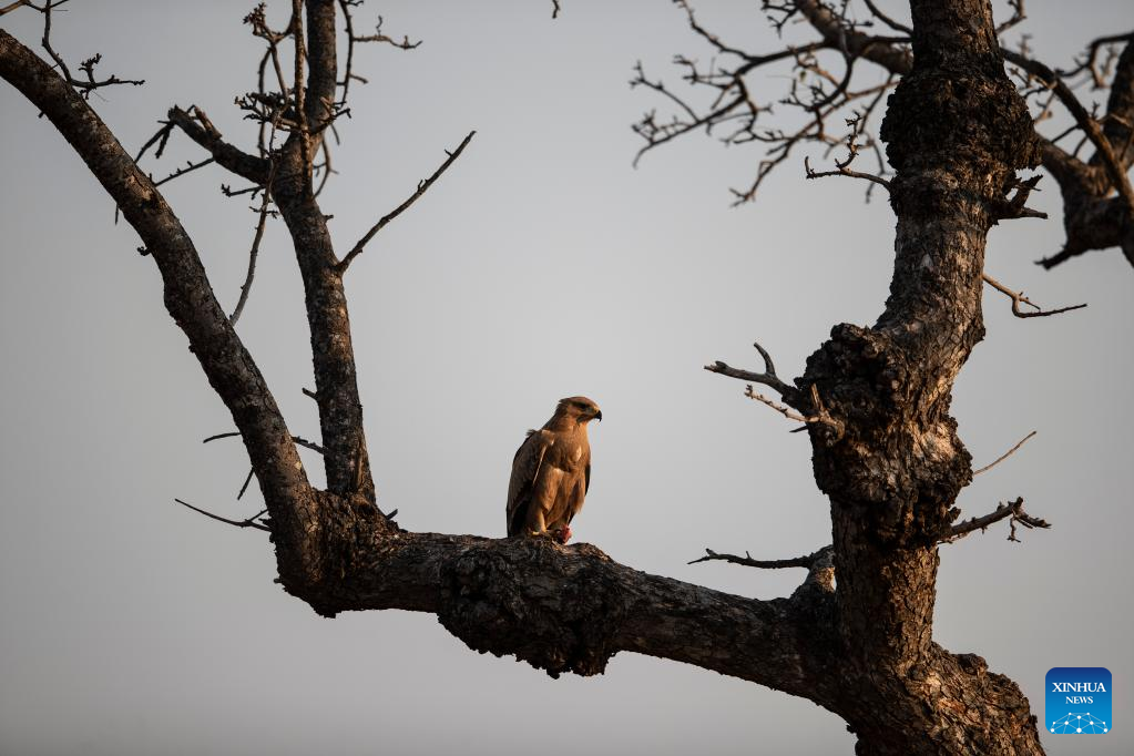 Photo taken on Sept. 17, 2022 shows a tawny eagle at the Kruger National Park, Mpumalanga, South Africa. Kruger National Park is one of the largest game reserves in Africa. Covering an area of 19,485 square kilometers in northeastern South Africa, the park is a home to an impressive number of species. (Xinhua/Zhang Yudong)