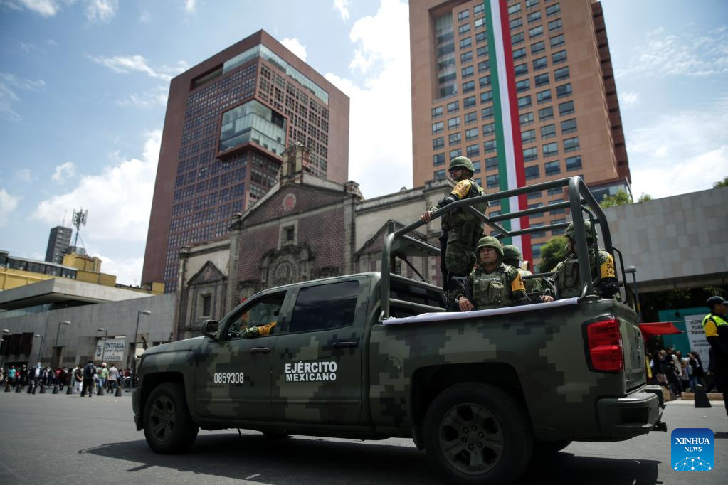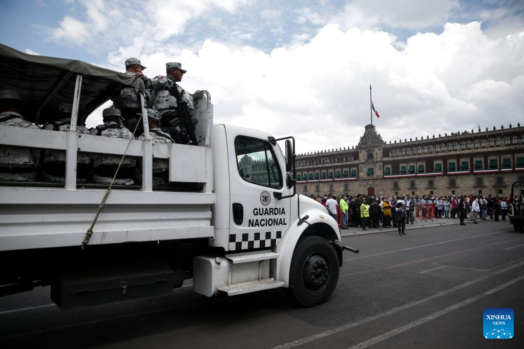 Members of the Mexican National Guard patrol in the Zocalo Square after an earthquake in Mexico City, Mexico, on Sept. 19, 2022. (Xinhua/Francisco Canedo)
