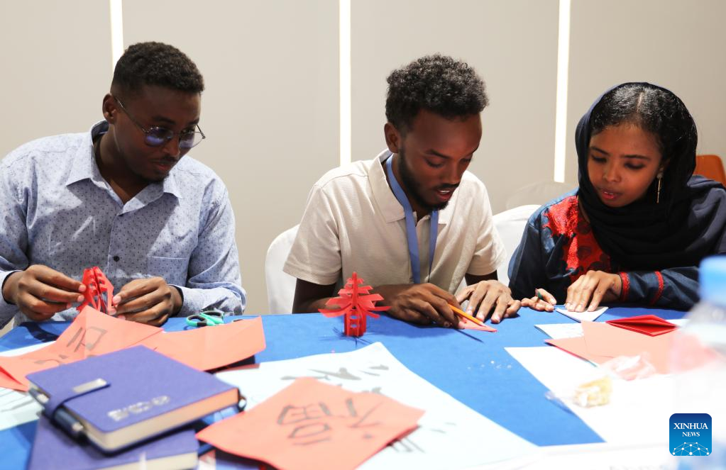 Trainees learn paper-cutting during a Chinese culture program in Djibouti City, capital of Djibouti on Sept. 18, 2022.