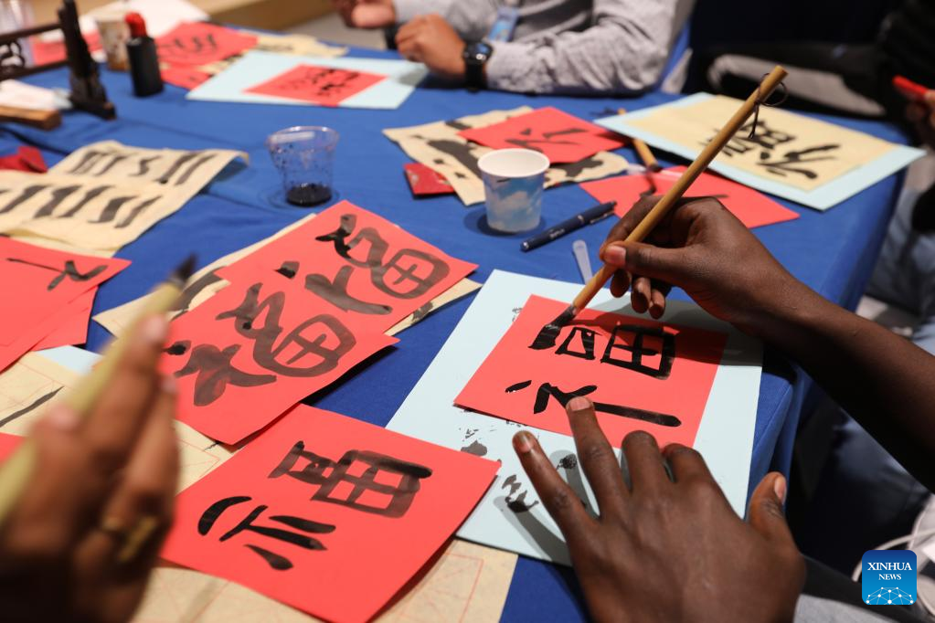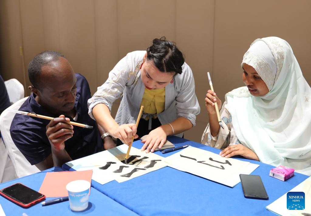 Trainees learn Chinese calligraphy during a Chinese culture program in Djibouti City, capital of Djibouti on Sept. 18, 2022.