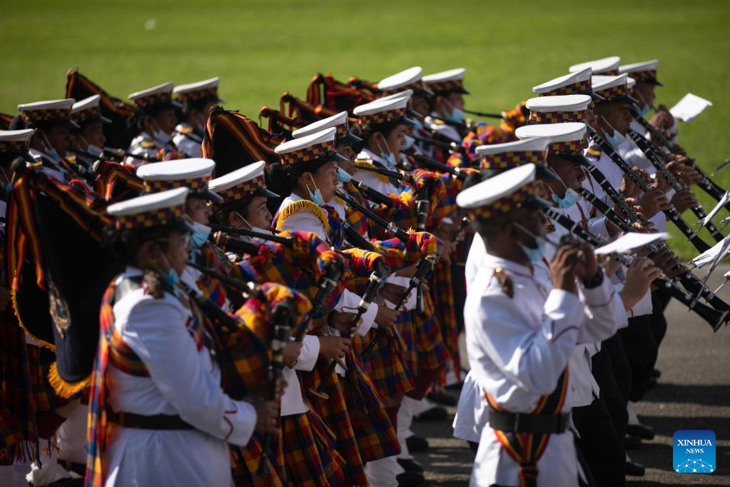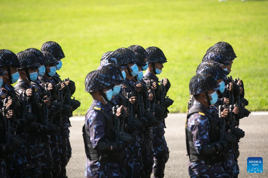 Nepali police personnel participate in the celebration of the Constitution Day in Kathmandu, Nepal, Sept. 19, 2022. (Photo by Sulav Shrestha/Xinhua)