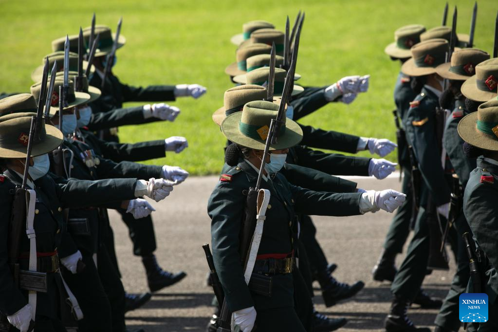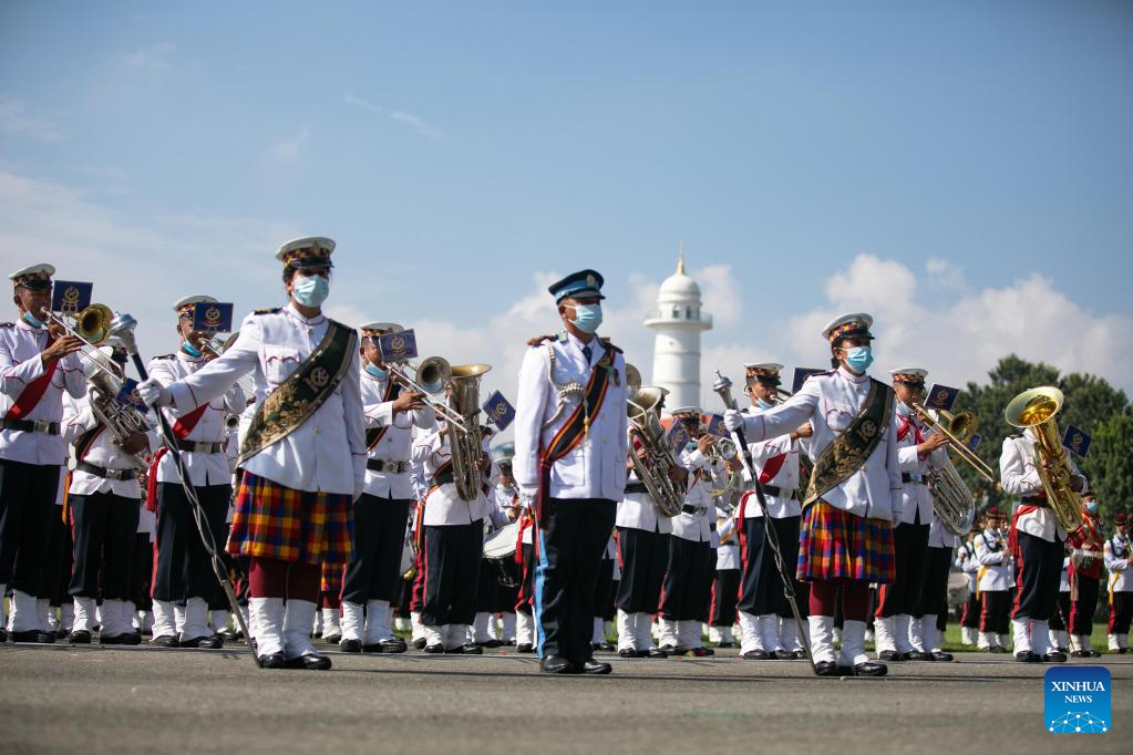 Nepali soldiers participate in the celebration of the Constitution Day in Kathmandu, Nepal, Sept. 19, 2022. (Photo by Sulav Shrestha/Xinhua)