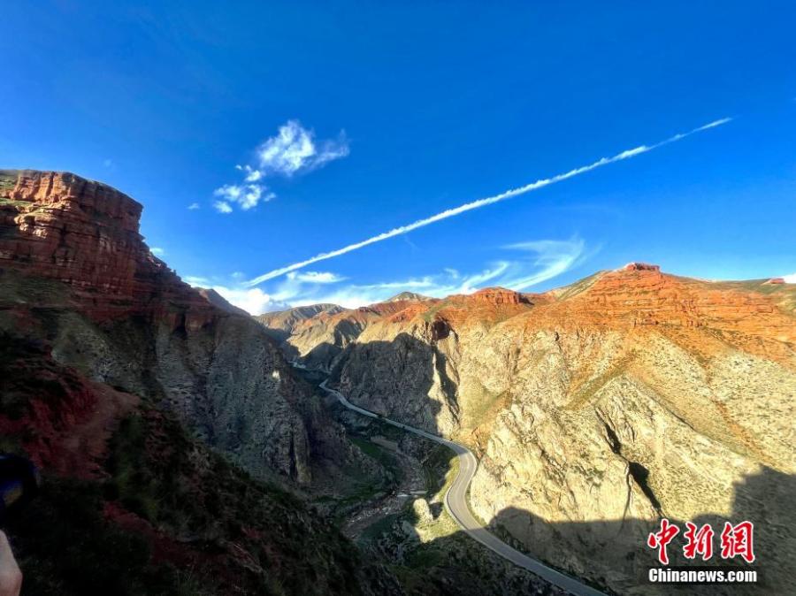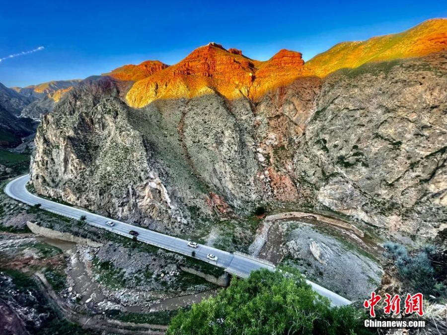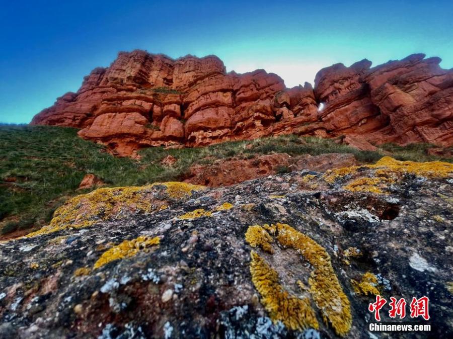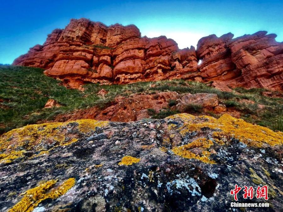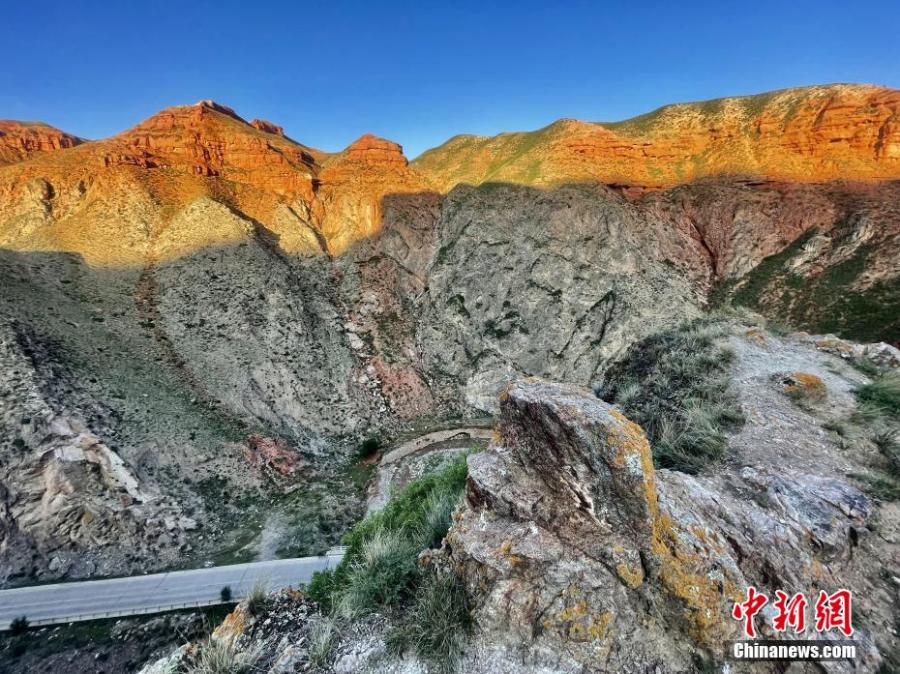 The orange sunset glow creates a special view on Danxia landform at Lamu Gorge, a 'windows-lattice' style Danxia landform in Hualong county, northwest China's Qinghai Province. (Photo: China News Service/Li Yufeng)