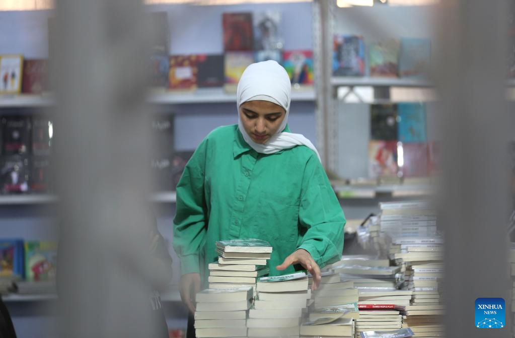 A Palestinian visits the 12th edition of Palestine International Book Fair in Surda town, near the West Bank city of Ramallah, on Sept. 22, 2022. (Photo by Ayman Nobani/Xinhua)