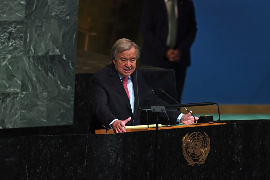 UN Secretary-General Antonio Guterres speaks at the opening of the General Debate of the 77th session of the UN General Assembly at the UN headquarters in New York, Sept. 20, 2022. (Xinhua/Li Rui)