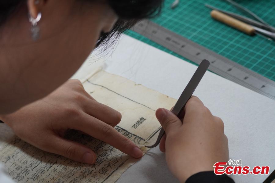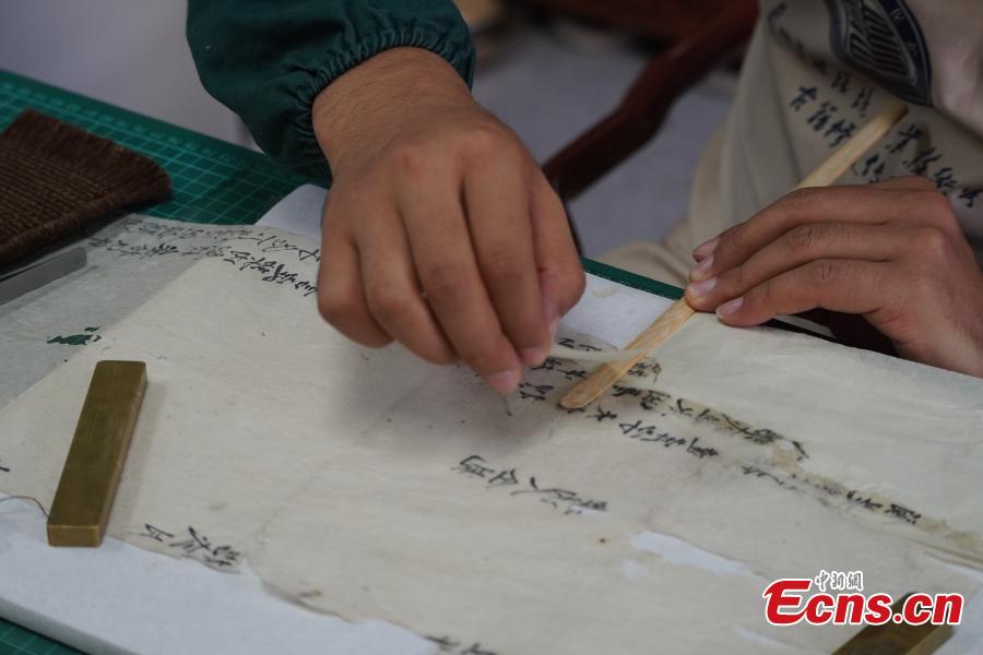 A student restores an ancient book at a vocational school in Lanzhou, northwest China's Gansu Province, Sept. 22, 2022. (Photo/China News Service)
