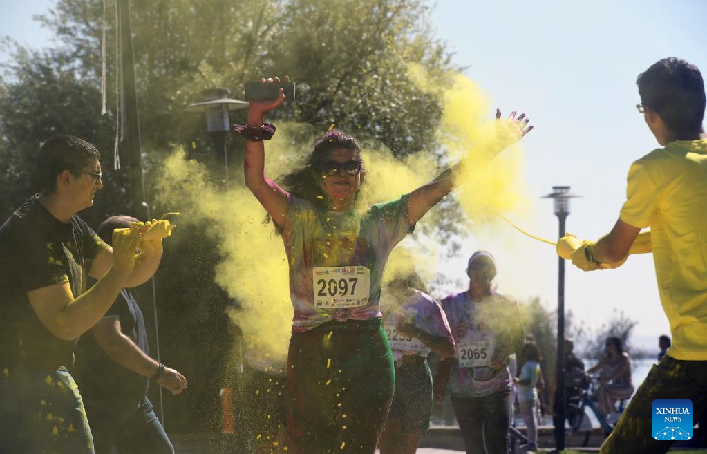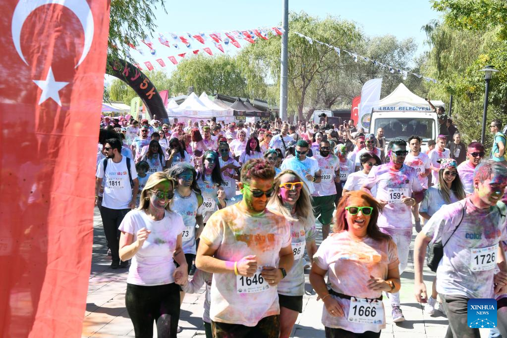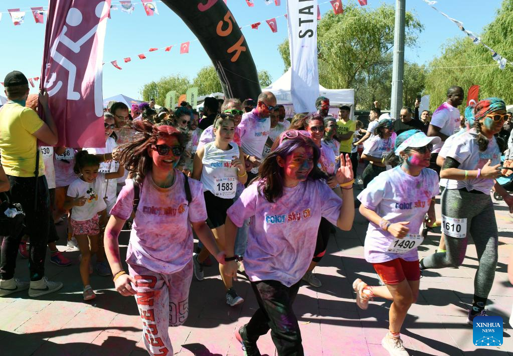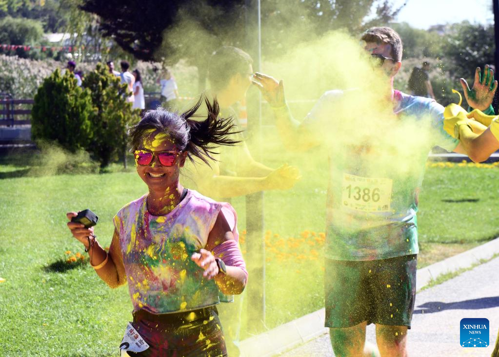 Runners take part in the "Color Sky 5K" running festival in Ankara, Trkiye, on Sept. 25, 2022. (Photo by Mustafa Kaya/Xinhua)