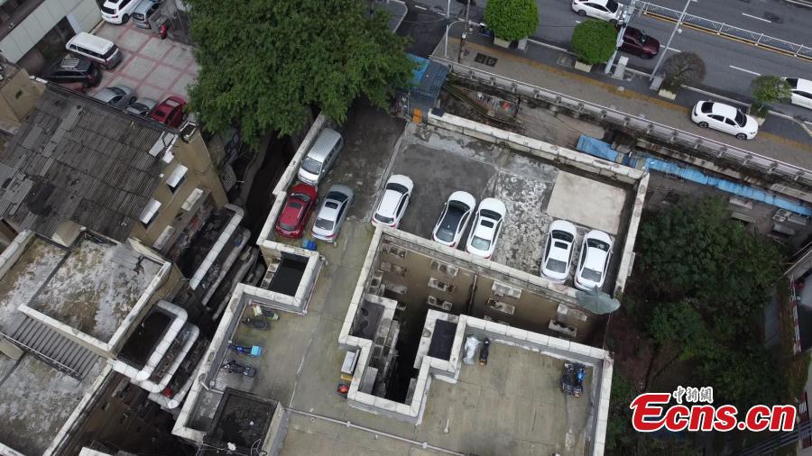 Cars are parked at a 10-story residential building's rooftop in Chongqing, Sept. 27, 2022. The rooftop parking lot eases parking problem in the mountain city. (Photo: China News Service/Xiao Jiangchuan)