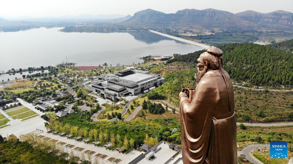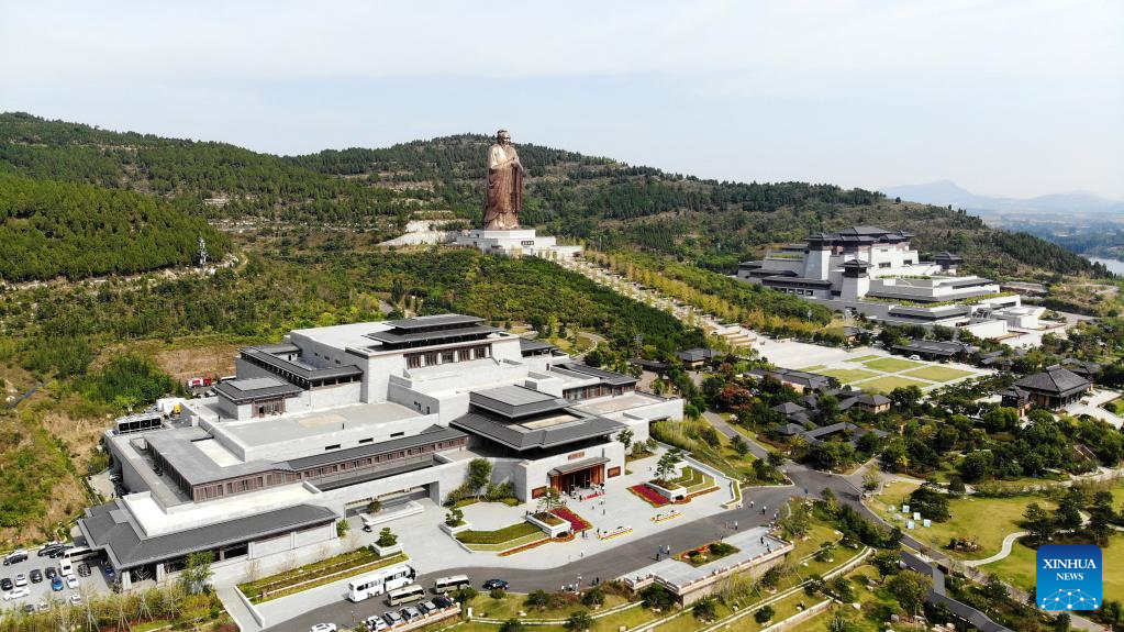 Aerial photo taken on Sept. 27, 2022 shows the site of 2022 China (Qufu) International Confucius Cultural Festival and the Eighth Nishan Forum on World Civilizations in Qufu, the birthplace of Confucius, in east China's Shandong Province. (Xinhua/Li Ziheng)