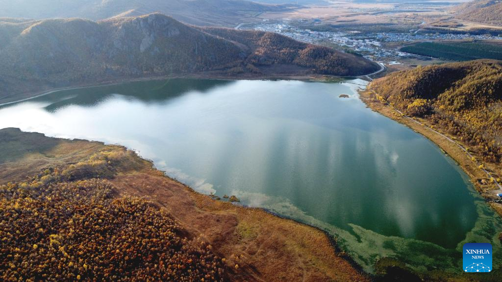 Aerial photo taken on Sept. 28, 2022 shows autumn scenery in Chaihe Town, Zhalantun City of north China's Inner Mongolia Autonomous Region. (Xinhua/En Hao)