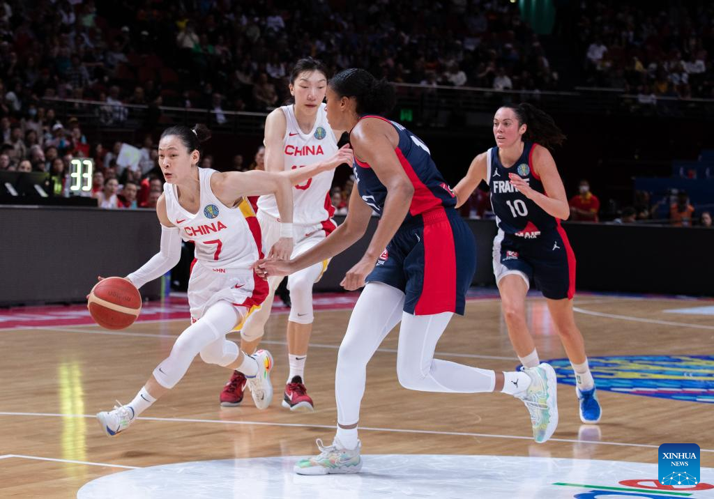 Yang Liwei (1st L) of China drives the ball during the quater-final match between China and France at the FIBA Women's Basketball World Cup 2022 in Sydney, Australia, on Sept. 29, 2022. (Photo by Hu Jingchen/Xinhua)