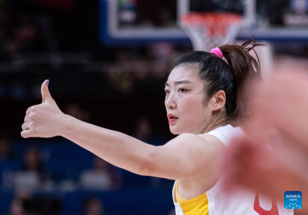 Li Meng of China gestures during the quater-final match between China and France at the FIBA Women's Basketball World Cup 2022 in Sydney, Australia, on Sept. 29, 2022. (Photo by Hu Jingchen/Xinhua)
