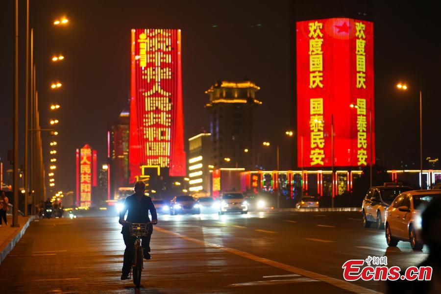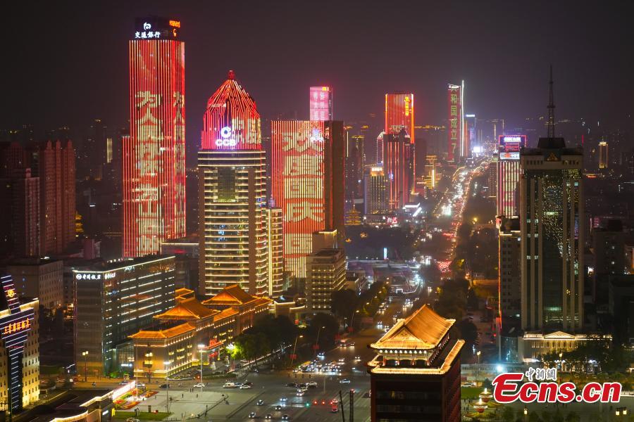 Landmark buildings are lighted up to celebrate the forthcoming 73rd anniversary of the founding of the People's Republic of China in Taiyuan, north China's Shanxi Province, Sept. 29, 2022. (Photo: China News Service/Wu Junjie)