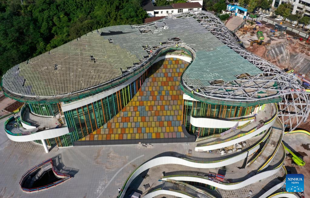 Photo taken on Sept. 29, 2022 shows the construction site of a youth activity center in southwest China's Chongqing Municipality. The construction of a youth activity center, covering an area of about 150 mu (10 hectares), went smoothly in Chongqing. (Xinhua/Wang Quanchao)