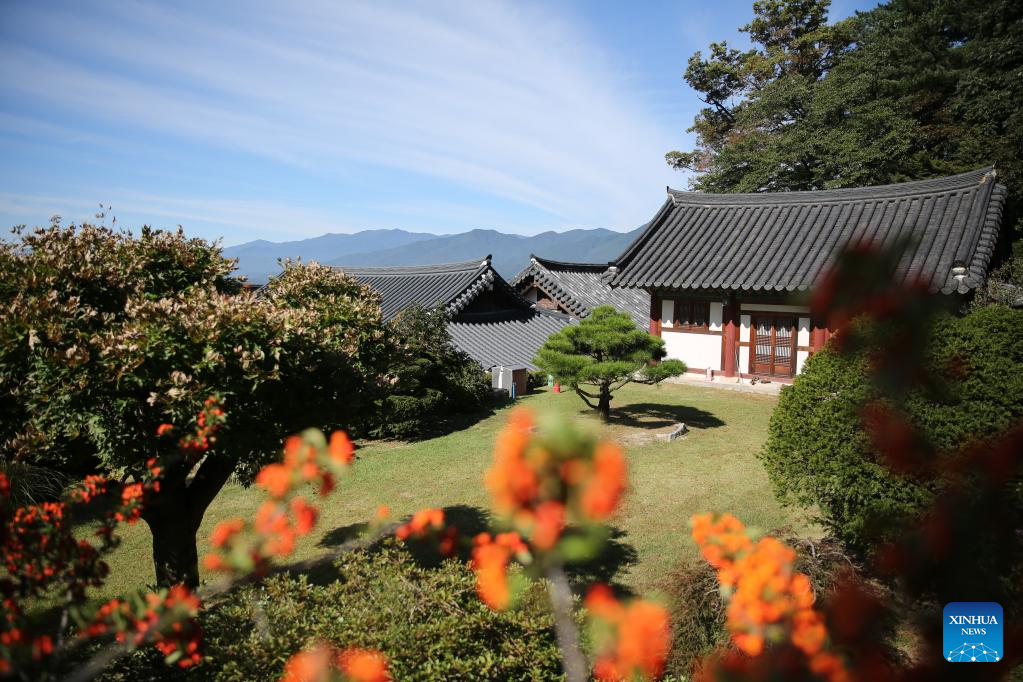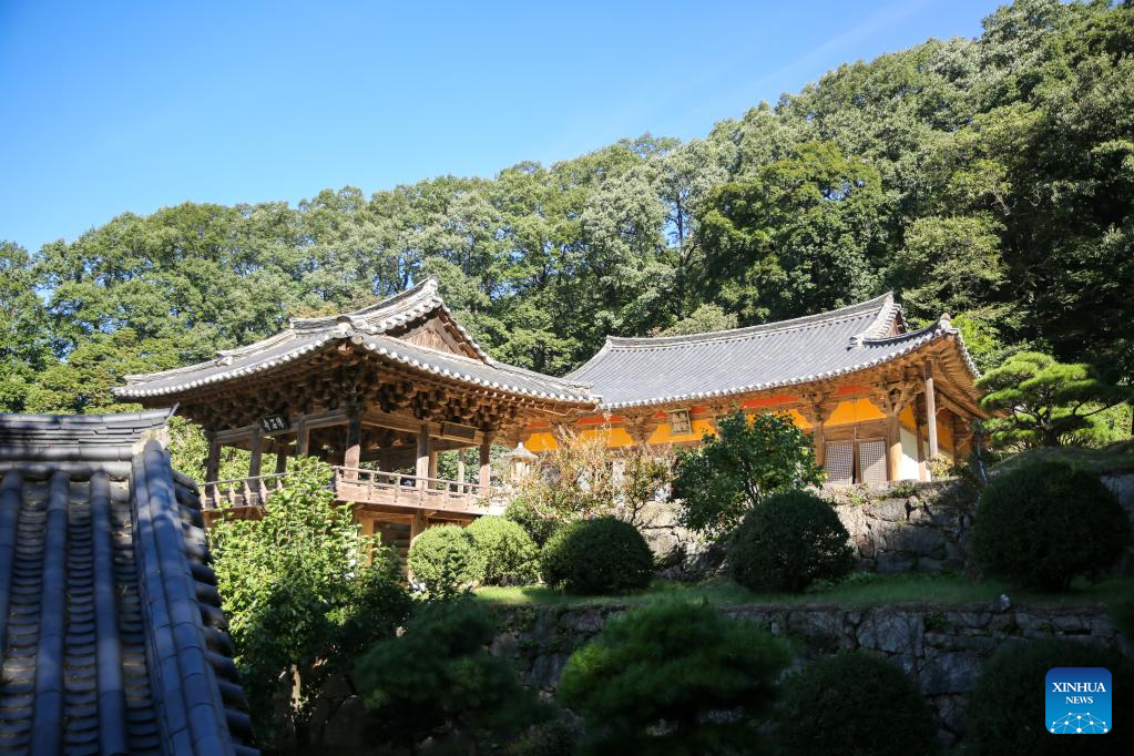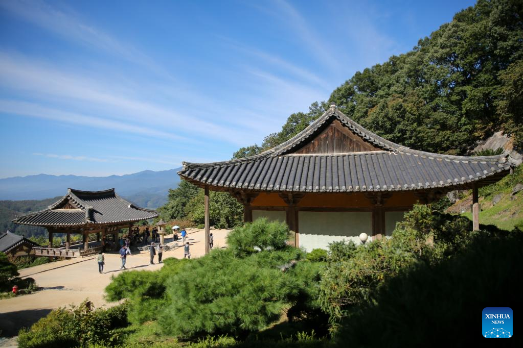 Photo taken on Oct. 1, 2022 shows a view in the Buseoksa Temple in Yeongju, South Korea. Buseoksa Temple is one of the seven Buddhist mountain monasteries in South Korea which were listed by the UNESCO as world heritage sites in 2018. (Xinhua/Wang Yiliang)