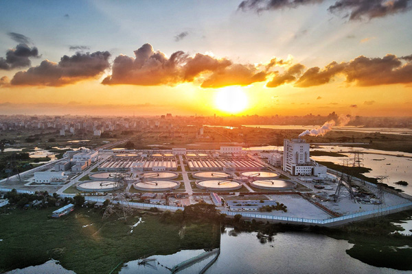An aerial view of the Dasherkandi Sewage Treatment Plant in Dhaka, Bangladesh, Aug. 24, 2022. [Photo/Xinhua]