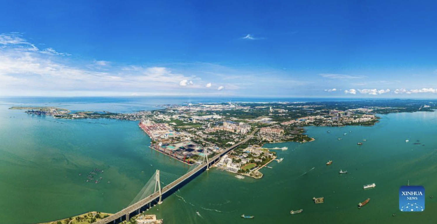 Aerial panoramic photo taken on Oct. 2, 2022 shows the Yangpu Economic Development Zone in south China's Hainan Province. As a state-level development zone established in 1992 in the northwest of Hainan, the Yangpu Economic Development Zone is a pioneer and demonstration area for the Hainan Free Trade Port. (Xinhua/Pu Xiaoxu)