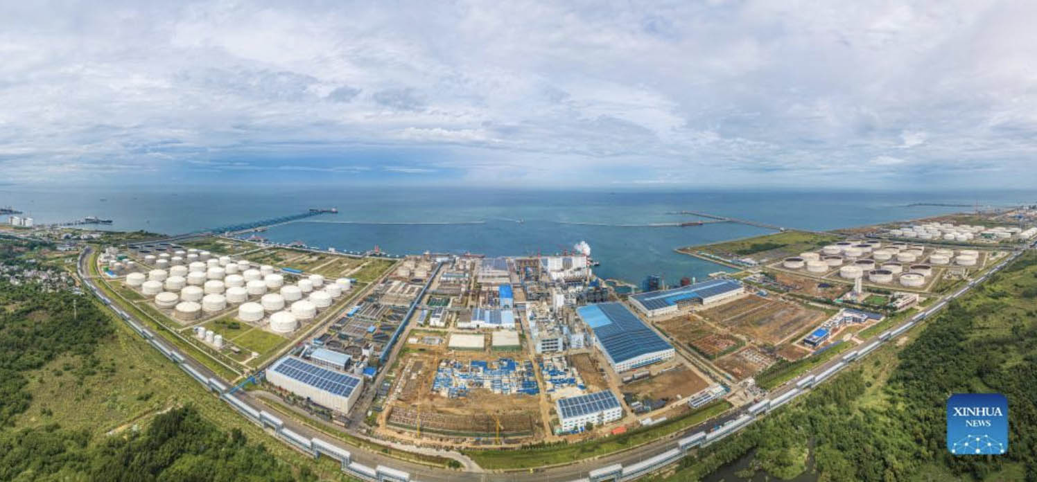 Aerial panoramic photo taken on Oct. 1, 2022 shows the petrochemical functional area of Yangpu Economic Development Zone in south China's Hainan Province. As a state-level development zone established in 1992 in the northwest of Hainan, the Yangpu Economic Development Zone is a pioneer and demonstration area for the Hainan Free Trade Port. (Xinhua/Pu Xiaoxu)