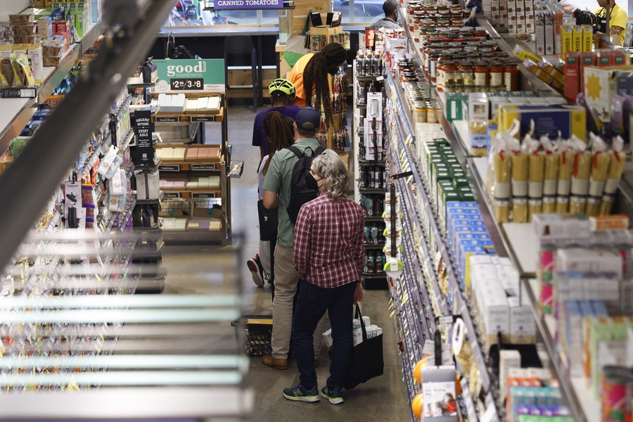 People shop at a local supermarket in Washington, D.C., the United States, Sept. 13, 2022. (Photo by Ting Shen/Xinhua)