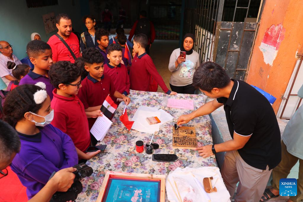 CAIRO, Oct. 3 (Xinhua) -- At the Al Jazeera Official Experimental Languages School in downtown Cairo, a group of volunteers held a range of interactive activities on Chinese customs, symbols and language on Monday to help Egyptian students better understand China and the Chinese language.
