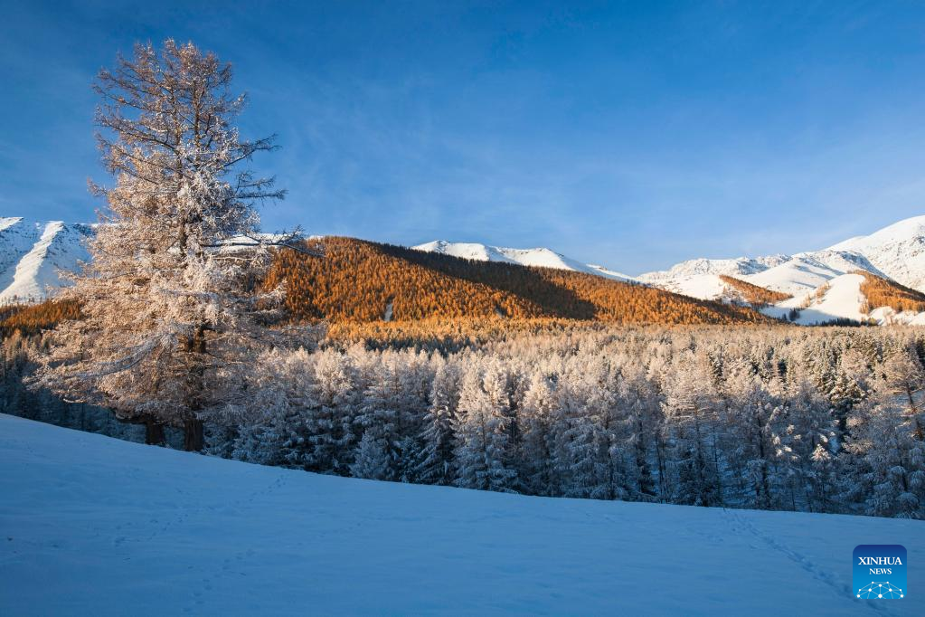 Aerial photo taken on Oct. 1, 2022 shows the scenery of the Kanas scenic area in northwest China's Xinjiang Uygur Autonomous Region. (Photo by Xu Guangjian/Xinhua)