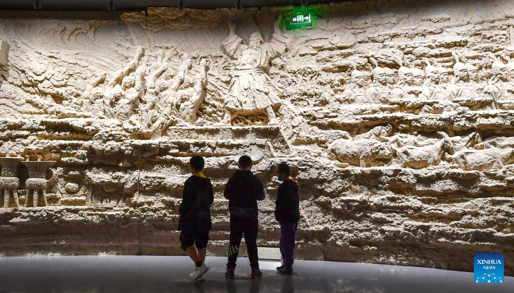People visit a museum for displaying cultural relics of Shang Dynasty (1600-1046 B.C.) in Zhengzhou, central China's Henan Province, Oct. 4, 2022. (Xinhua/Li Jianan)