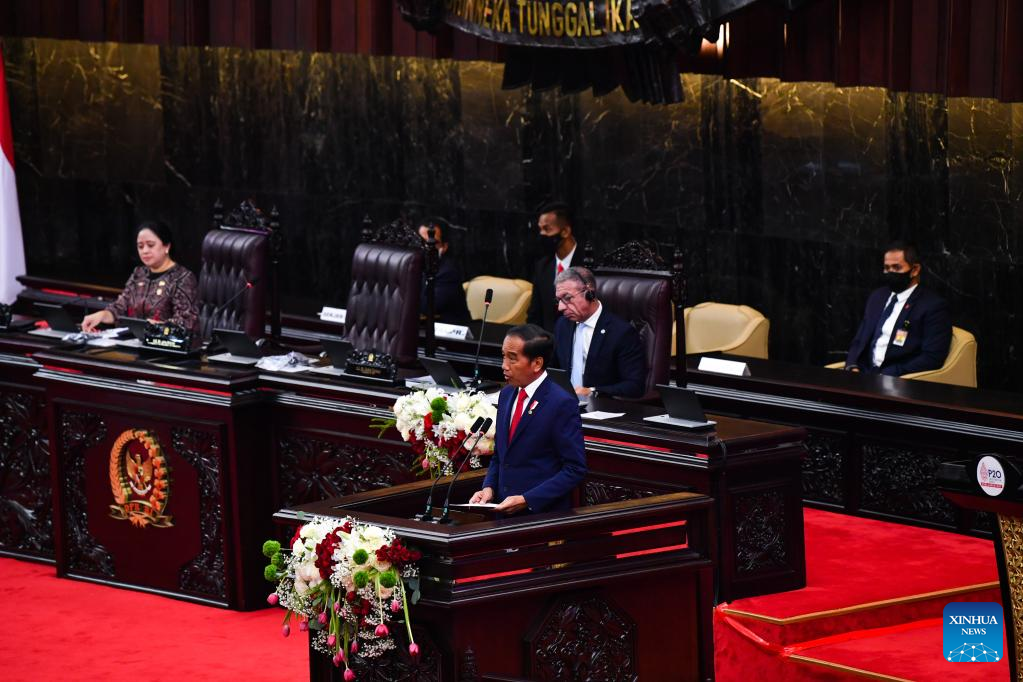 JAKARTA, Oct. 6 (Xinhua) -- Indonesian President Joko Widodo on Thursday asked the parliaments of the Group of Twenty (G20) countries to strengthen cooperation to overcome the global crisis and promote world economic recovery amid geopolitical conflicts.