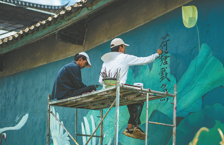 The painting is part of a two-year project enhancing 100 walls in the county. [Photo/Xinhua]