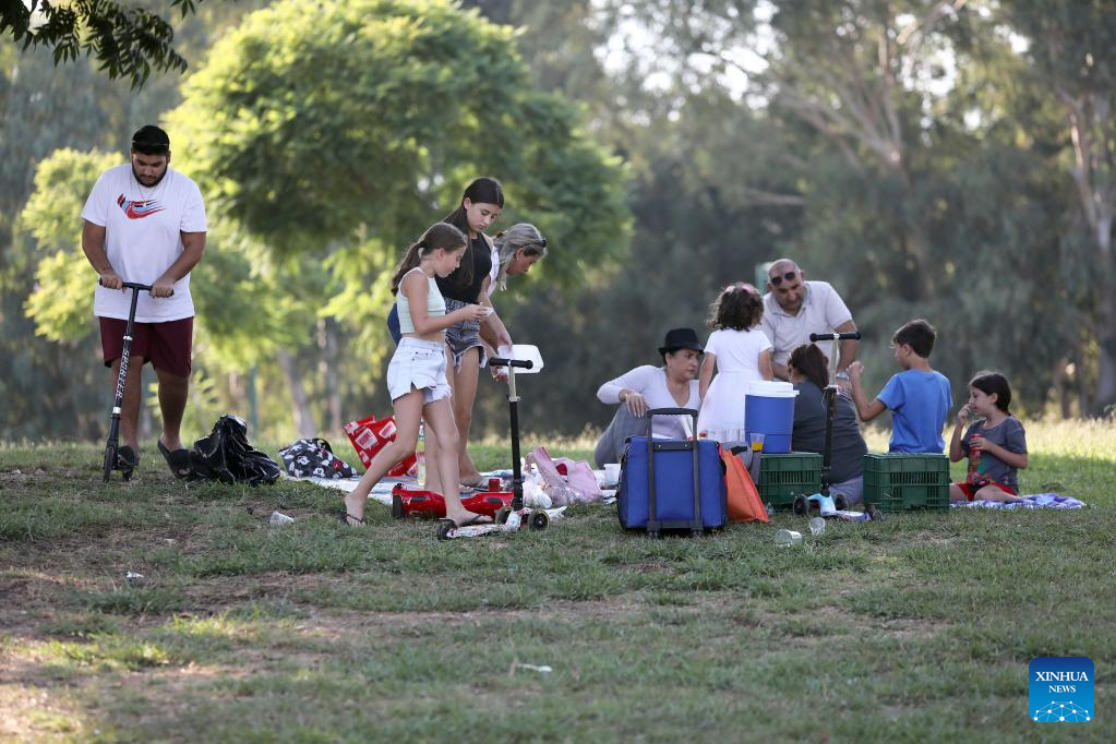 People enjoy themselves at Hayarkon Park during the Sukkot holiday in Tel Aviv, Israel, Oct. 11, 2022. (Gideon Markowicz/JINI via Xinhua)