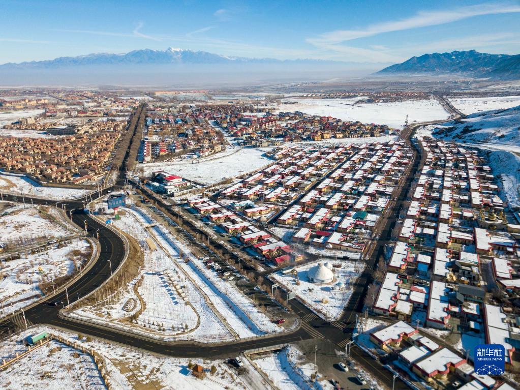 Aerial photo taken on Jan. 11, 2022, shows roads in a village in Shuixigou township, Urumqi county, northwest China's Xinjiang Uygur Autonomous Region. (Xinhua/Hu Huhu)