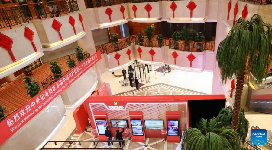 Photo taken on Oct. 12, 2022 shows the digital media experience space of the press center for the 20th National Congress of the Communist Party of China (CPC) in Beijing, capital of China. The press center for the upcoming 20th National Congress of the Communist Party of China (CPC) officially opened on Wednesday to provide services for journalists covering the congress. (Xinhua/Yin Gang)