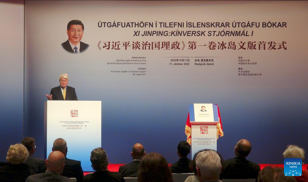 Politicians, diplomats and officials from China and Iceland participated in a ceremony on Tuesday to launch the Icelandic edition of the first volume of "Xi Jinping: The Governance of China", hailing the publication for enhancing exchanges between the two countries and helping the world better understand China.