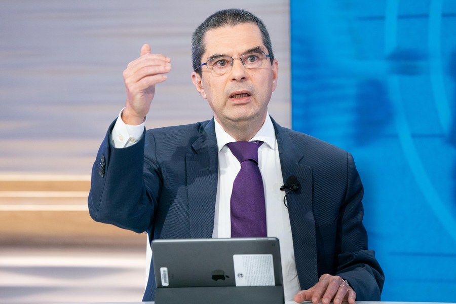 International Monetary Fund (IMF) Fiscal Affairs Department Director Vitor Gaspar participates in the Fiscal Monitor press conference during the 2021 annual meetings in Washington, D.C., the United States, on Oct. 13, 2021. (IMF Photo/Allison Shelley/Handout via Xinhua)