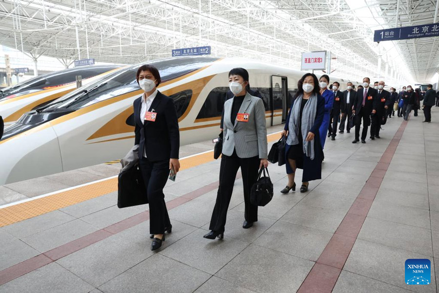Delegates from Inner Mongolia Autonomous Region to the 20th National Congress of the Communist Party of China (CPC) arrive in Beijing, capital of China, Oct. 13, 2022. (Xinhua/Zhang Yuwei)