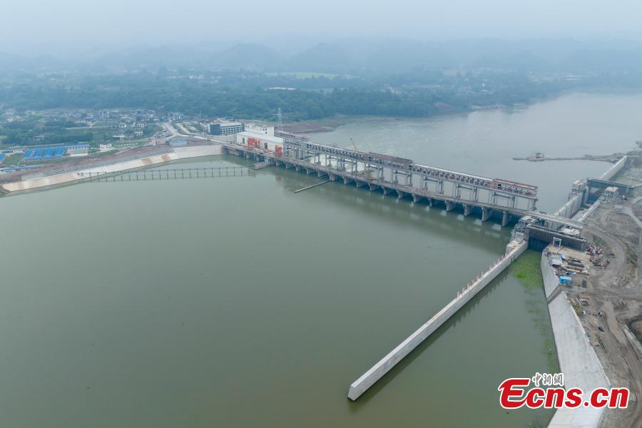 Aerial view shows the ship lock of the Huduxi Navigation and Hydropower Hub on Minjiang River in Qingshen, southwest China's Sichuan Province. (Photo: China News Service/Liu Zhongjun)