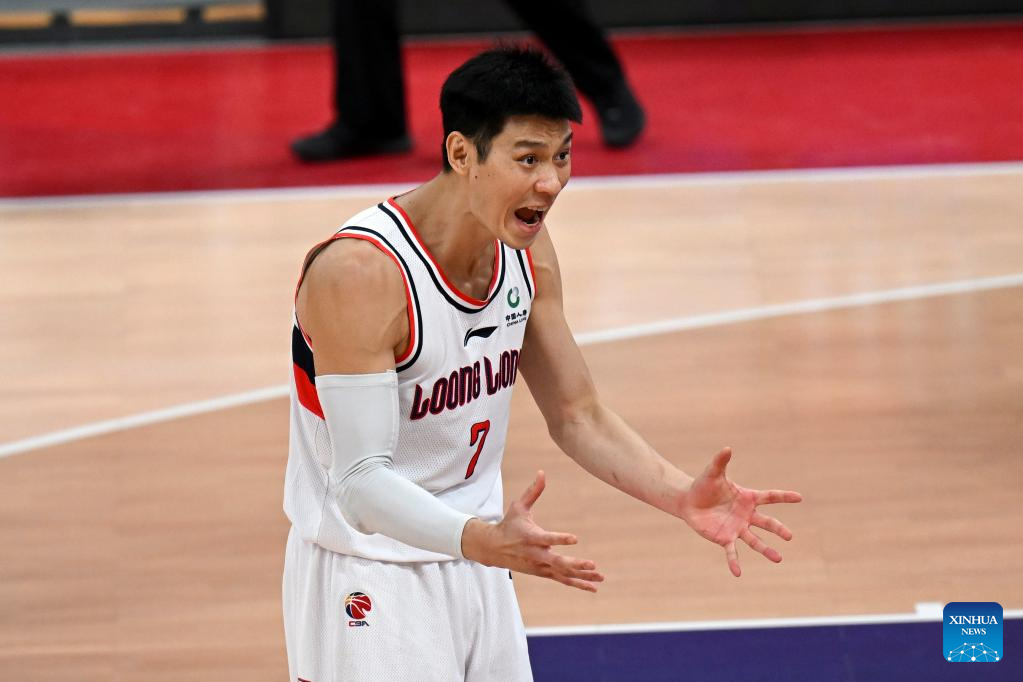 Jeremy Lin of Guangzhou Loong Lions reacts during the 2nd round match between Guangzhou Loong Lions and Sichuan Blue Whales at the 2022-2023 season of the Chinese Basketball Association (CBA) league in Hangzhou, east China's Zhejiang Province, Oct. 14, 2022. (Xinhua/Chen Zhenhai)