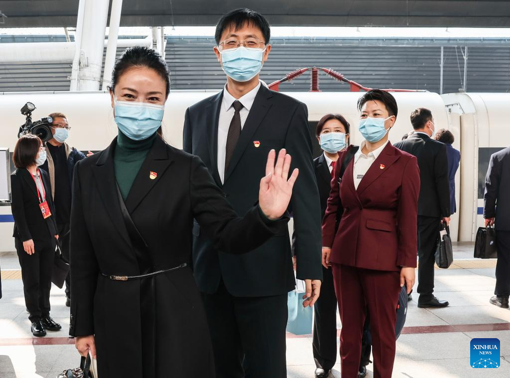 Delegates from Hubei Province to the 20th National Congress of the Communist Party of China (CPC) arrive in Beijing, capital of China, Oct. 14, 2022. (Xinhua/Zhang Yuwei)