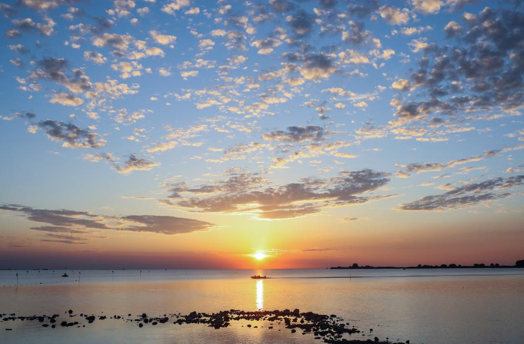 Photo taken on Sept. 26, 2022 shows the sunset scenery of Hongze Lake in Huai'an City, east China's Jiangsu Province. (Photo by Zhao Qirui/Xinhua)