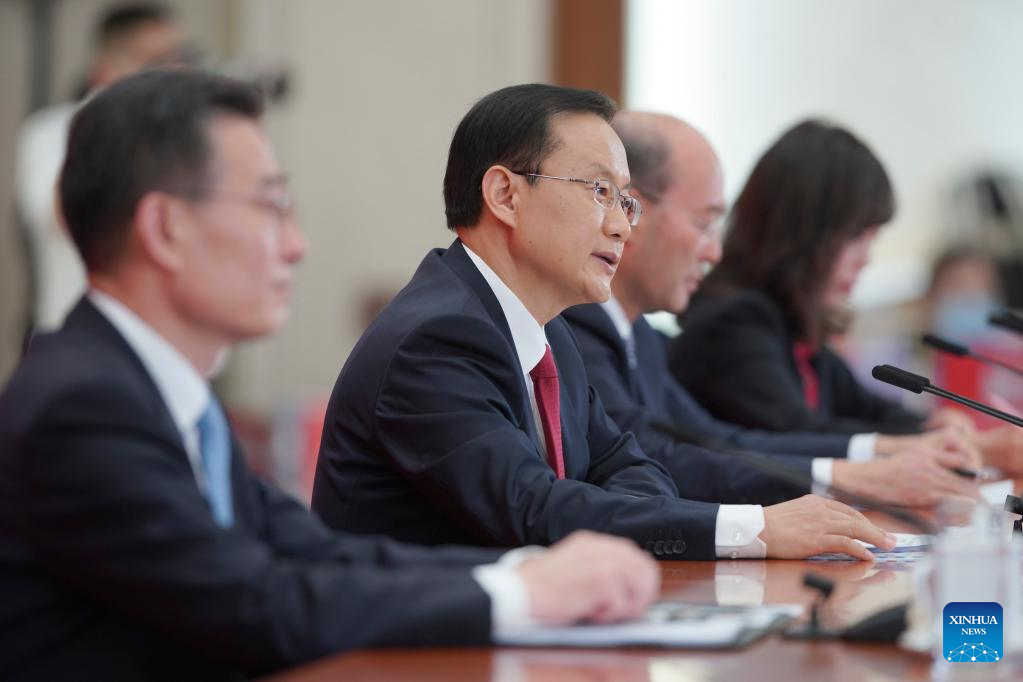 Sun Yeli, spokesperson for the 20th National Congress of the Communist Party of China (CPC), holds a press conference at the Great Hall of the People in Beijing, capital of China, Oct. 15, 2022. (Xinhua/Cai Yang)