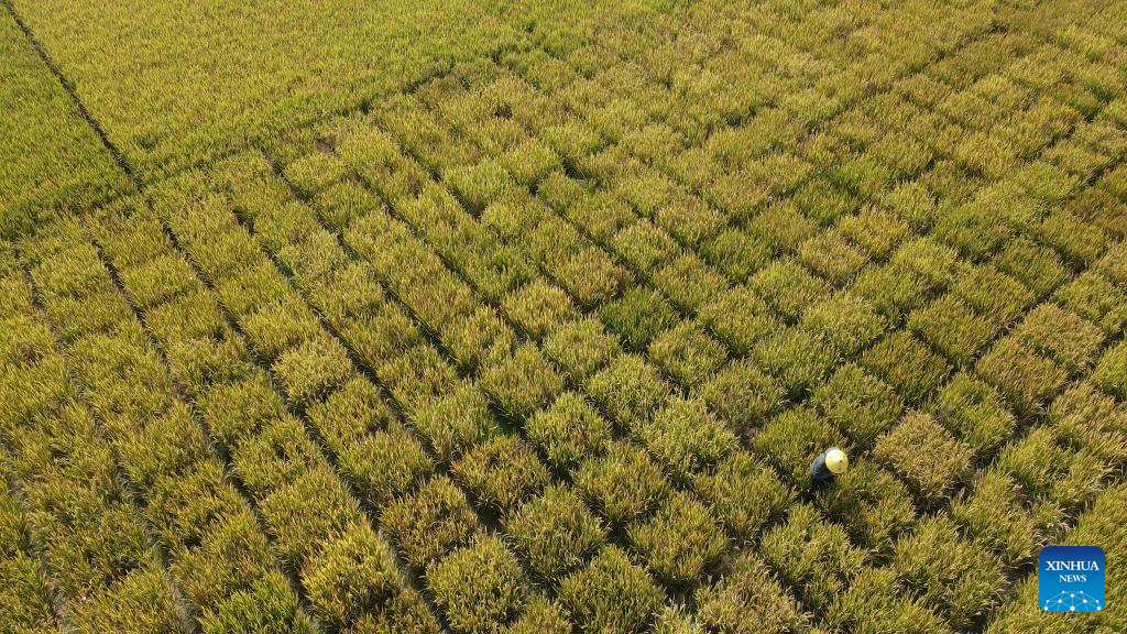 Located along the Chaohu Lake in Baohe District, the demonstration test paddy under Rice Research Institute of Anhui Academy of Agricultural Sciences is used to identify and develop rice germplasm resources, and facilitate the breeding of new quality rice varieties. (Xinhua/Zhang Duan)
