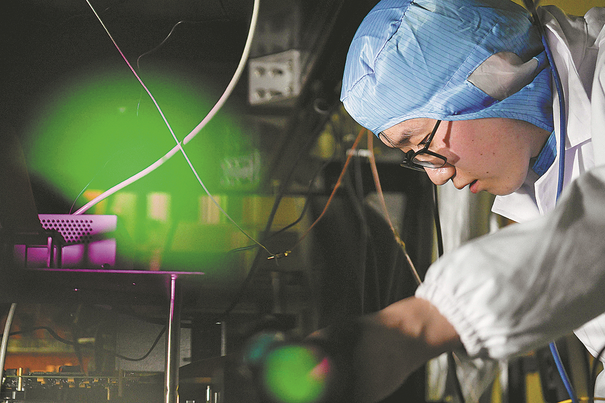 A researcher works in the State Key Laboratory of Quantum Information at the University of Science and Technology of China in Hefei, Anhui province, on Jan 31. ZHANG DUAN/XINHUA