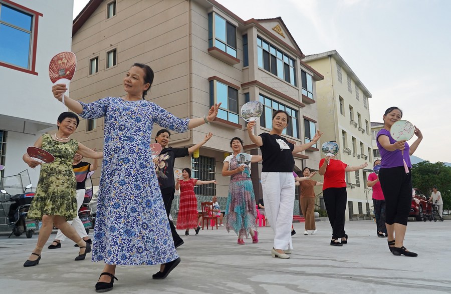 Tourists dance in Sanping Village of Zhongyuan Town in Jing'an County, east China's Jiangxi Province, July 27, 2022. Sanping, once a poverty-stricken village, has now become a popular summer resort. (Xinhua/Wan Xiang)