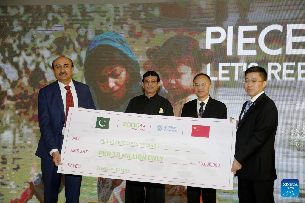 The event was aimed at donating cash to the country's south Sindh province where some districts had been worst hit in recent floods, and at appreciating efforts of local employees who worked hard to restore the cellular network after it was hampered by the rains.