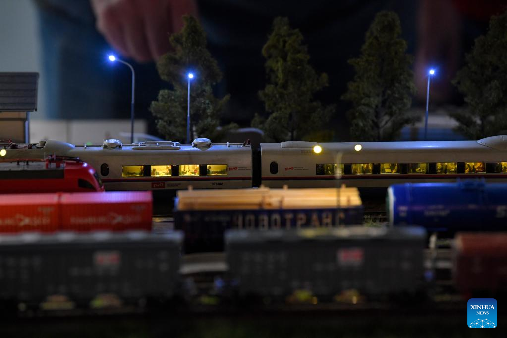 Model trains are on display at a railway model exhibition in Moscow, Russia, on Oct. 21, 2022. The exhibition marks the 185th anniversary of the railways in Russia. (Photo by Alexander Zemlianichenko Jr/Xinhua)