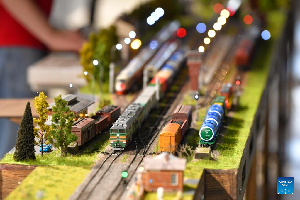 Model trains are on display at a railway model exhibition in Moscow, Russia, on Oct. 21, 2022. The exhibition marks the 185th anniversary of the railways in Russia. (Photo by Alexander Zemlianichenko Jr/Xinhua)