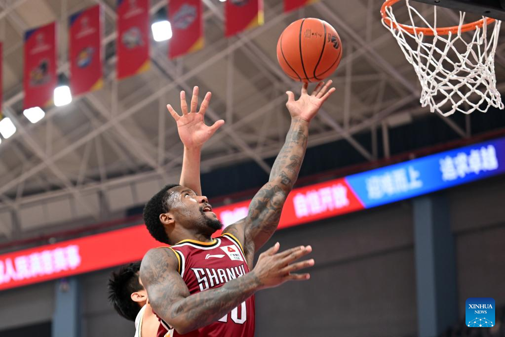 Shanxi Loongs' Kay Felder goes to the basket during the 6th round match against Zhejiang Lions at the 2022-2023 season of the Chinese Basketball Association (CBA) league in Hangzhou, east China's Zhejiang Province, Oct. 22, 2022. (Xinhua/Chen Zhenhai)